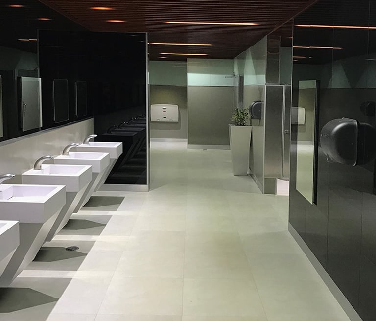 Diseño interior y adecuación de instalaciones, mobiliario, iluminación y equipos para los siete módulos sanitarios de mujeres, hombres y familiares existentes en la plaza.
